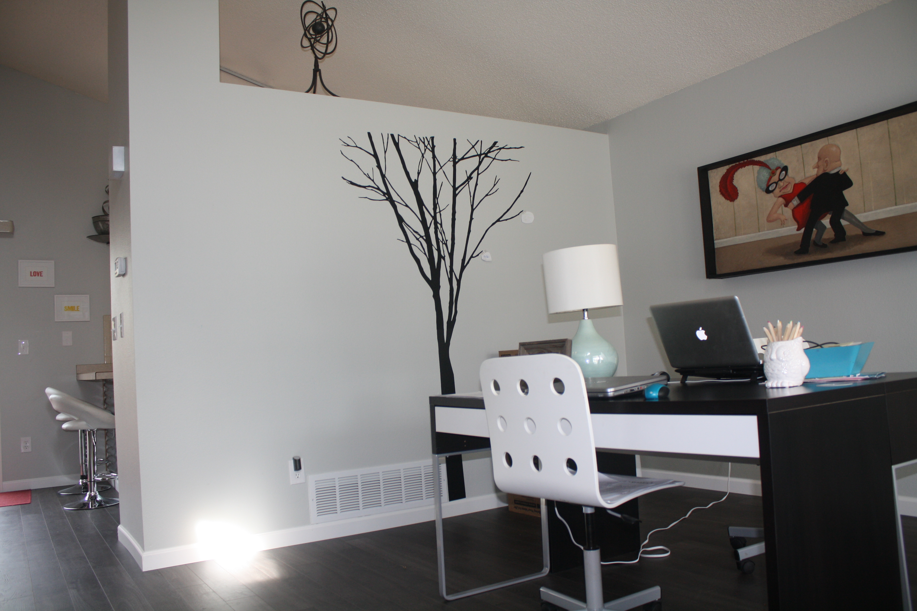 Here is a quick peek inside, which as you can tell, still needs some DIY love. The hubs added a ladder with a bed in case the lil’ guy decides to camp outside one night, and two chairs that can be folded up when not in use, some prayer flags, and more chalkboard wall for “the writing of the rules.”