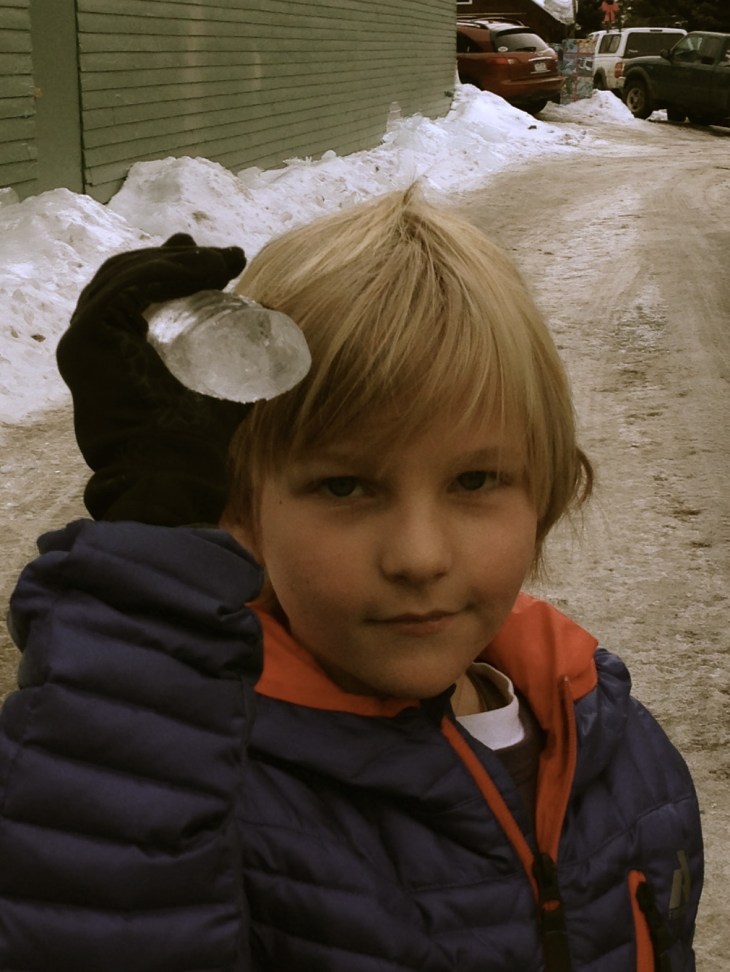 A couple of hours later, we landed on Main Street in Breckinridge. We checked into the lodge, unloaded our bags, and headed out with our snow boots on meandering down Main Street. N enjoyed throwing snow balls and collecting huge icicles.