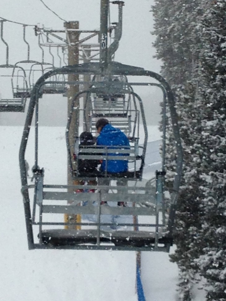 Snow was pouring from the sky as we put on our skis and headed to the lift.